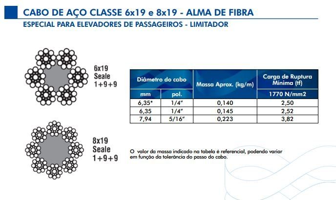 6X19 E 8X19 AF - ESPECIAL ELEVADORES LIMITADOR