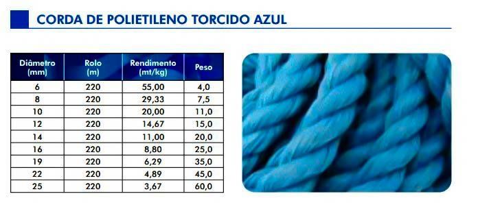 Corda de polietileno torcido azul